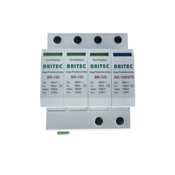 This product is a Type 2 Surge Protection Device, also known as a Type 2 Surge Protector or Surge Protection Device Type 2. It has a Uc rating of 150V/275V/320V/385V/440V and a response time of ≤25ns. This product is also available for OEM and its model number is BR-120 3+1.